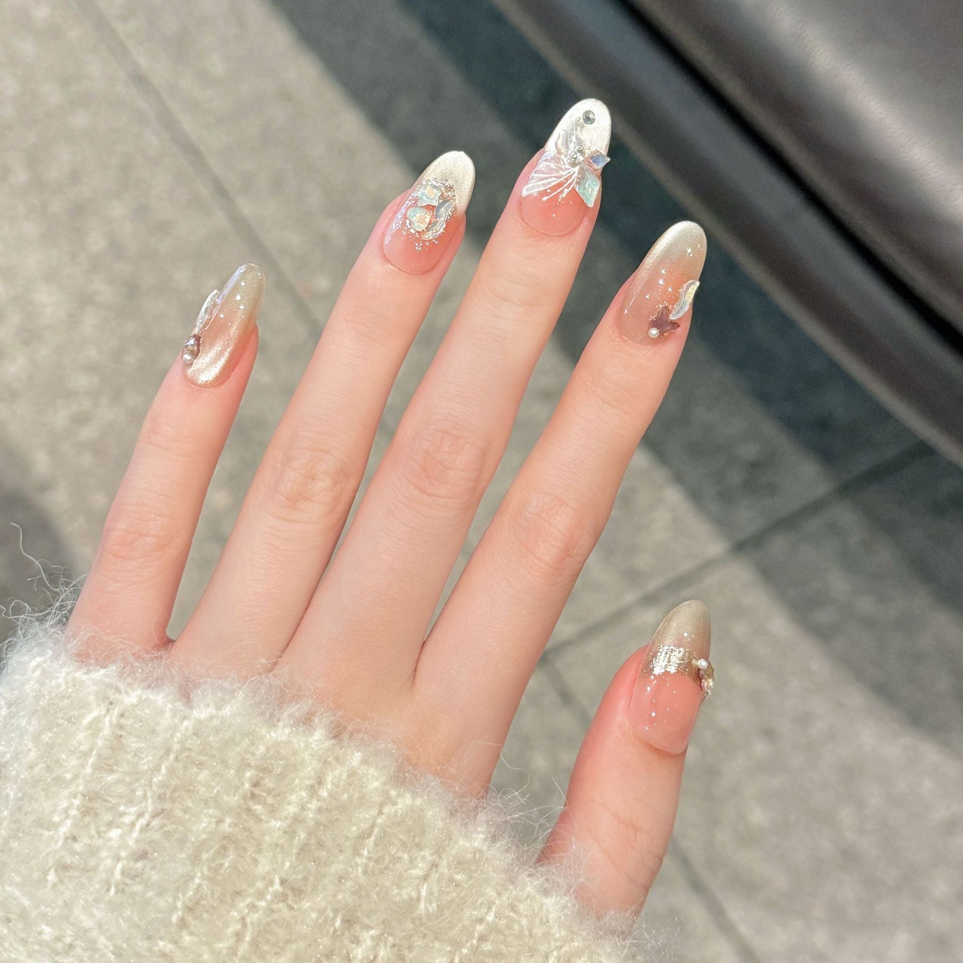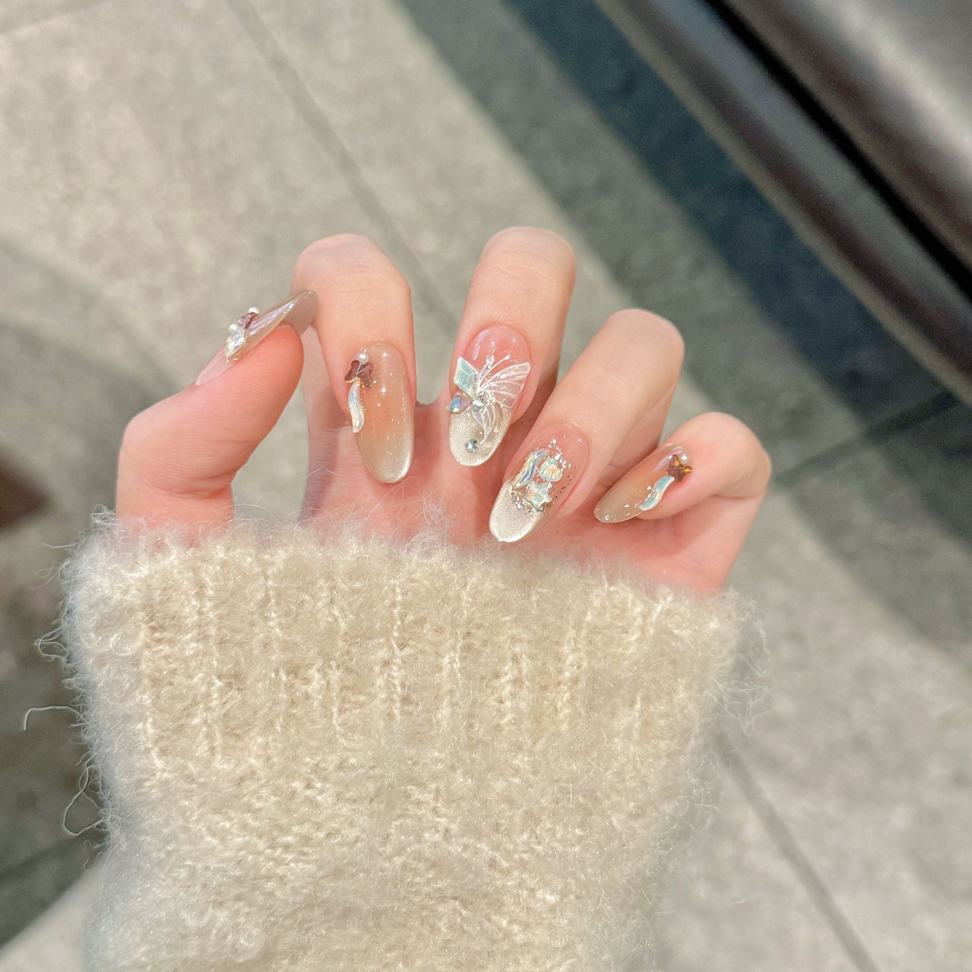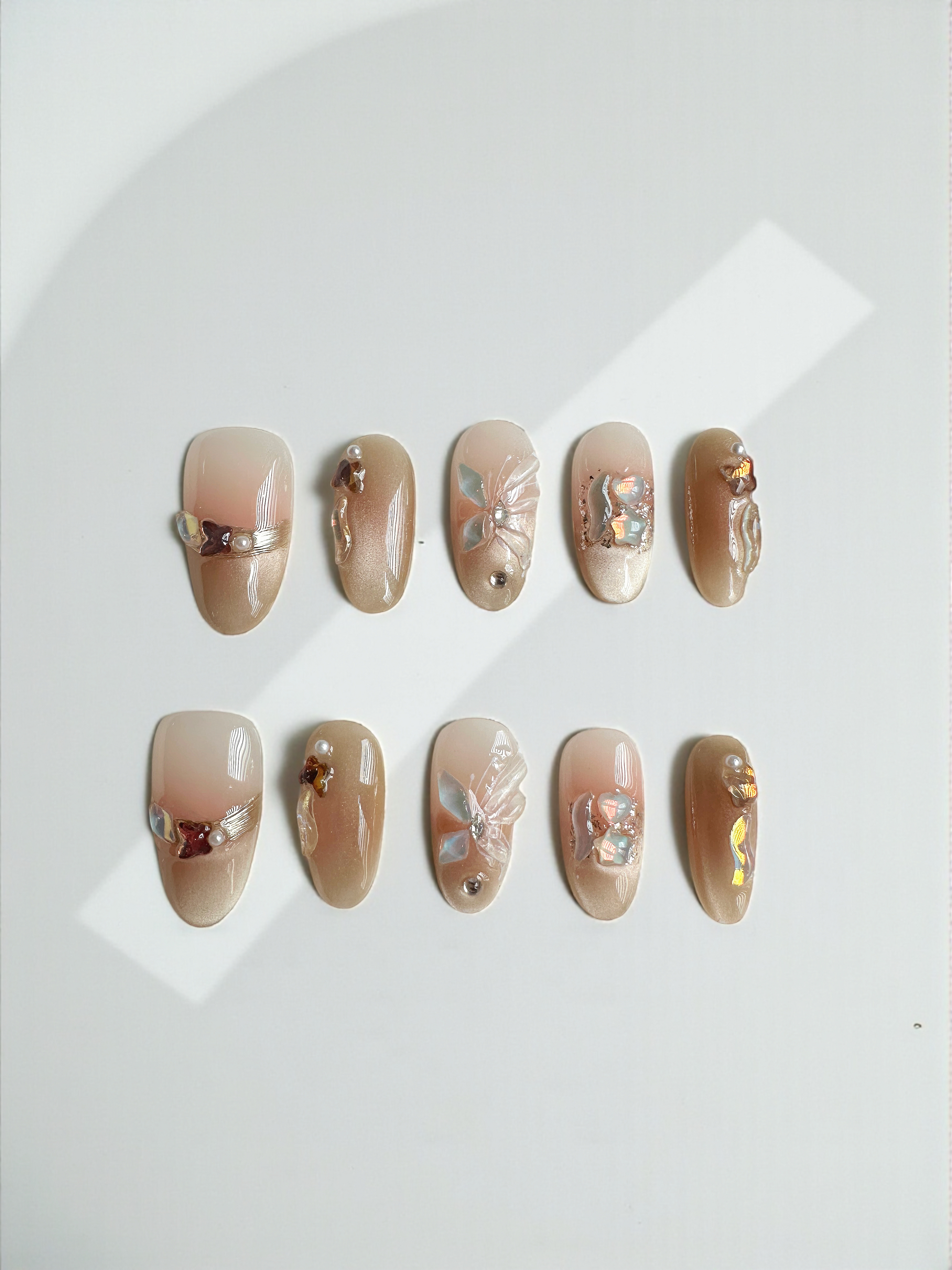 Ready Stock ใโจ Lavla Lab 100% Handmade Press On Nails - Butterfly Pearl Glow
